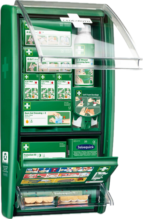Med en komplett Första Hjälpen station på din arbetsplats kan det finnas snabbare hjälp om olyckan är frame.